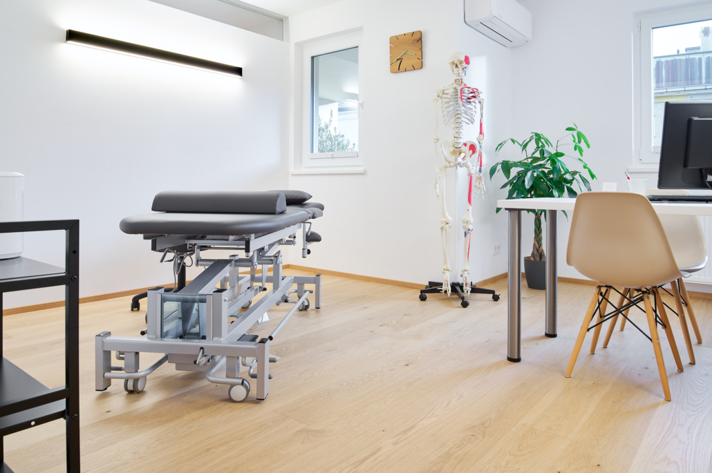Bei unseren Räumlichkeiten handelt es sich um eine Gemeinschaftspraxis von meiner Frau, Anna Connert, und mir. Nach umfangreichen Renovierungsarbeiten freuen wir uns, unsere Patient:innen seit Juni 2025 in dieser sehr hellen und ruhigen Praxis begrüßen zu dürfen. Neben zwei Therapieräumen steht auch ein gut ausgestatteter Trainingsraum zur Verfügung.